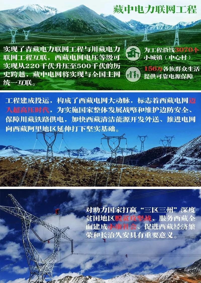 建設(shè)藏中電力聯(lián)網(wǎng)工程,實(shí)現(xiàn)了青藏電力聯(lián)網(wǎng)工程與川藏電力聯(lián)網(wǎng)工程互聯(lián),西藏電網(wǎng)電壓等級可實(shí)現(xiàn)從220千伏升壓至500千伏的歷史跨越,藏中電網(wǎng)將實(shí)現(xiàn)與全國主網(wǎng)統(tǒng)一互聯(lián)。